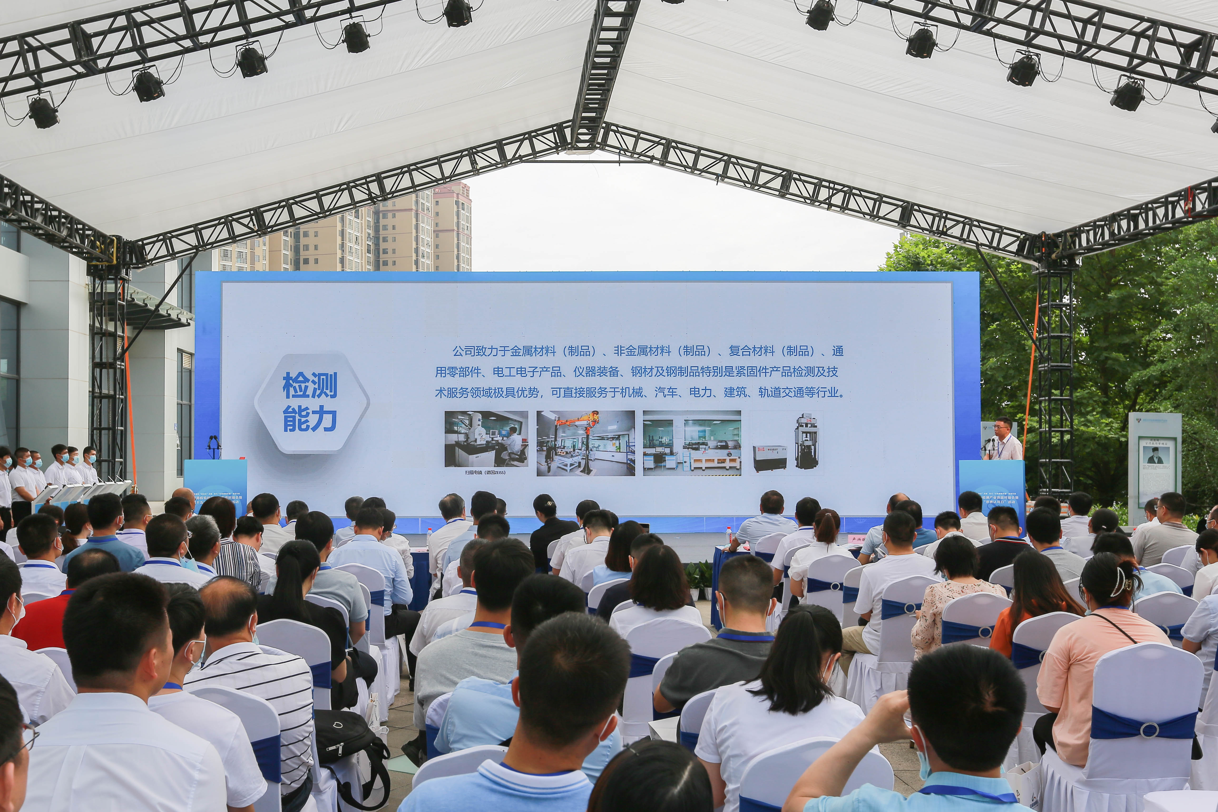 活動現(xiàn)場, 湖南中機申億檢測技術(shù)有限公司總經(jīng)理呂闖作為檢驗檢測機構(gòu)代表之一,上臺介紹了公司在檢驗檢測能力建設(shè)及公司未來發(fā)展的目標。湖南中機申億檢測技術(shù)有限公司將以市場為導向,優(yōu)化資源配置,堅持技術(shù)創(chuàng)新和制度創(chuàng)新,更快更高效的為客戶提供全方位的測試認證服務。